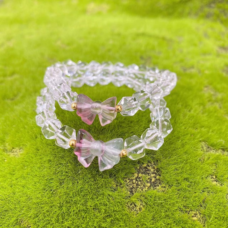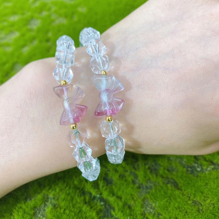 clear quartz faceted fluorite bowknot bracelet