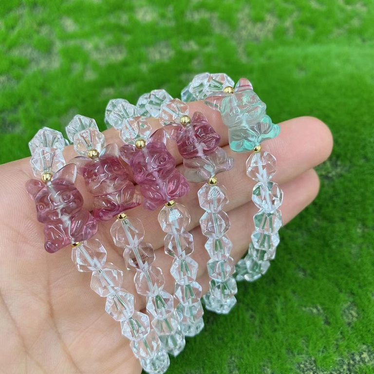 clear quartz faceted fluorite pikachu bracelet